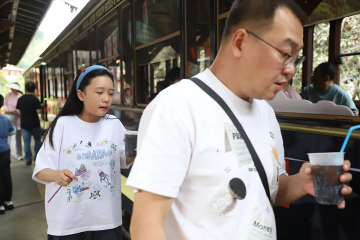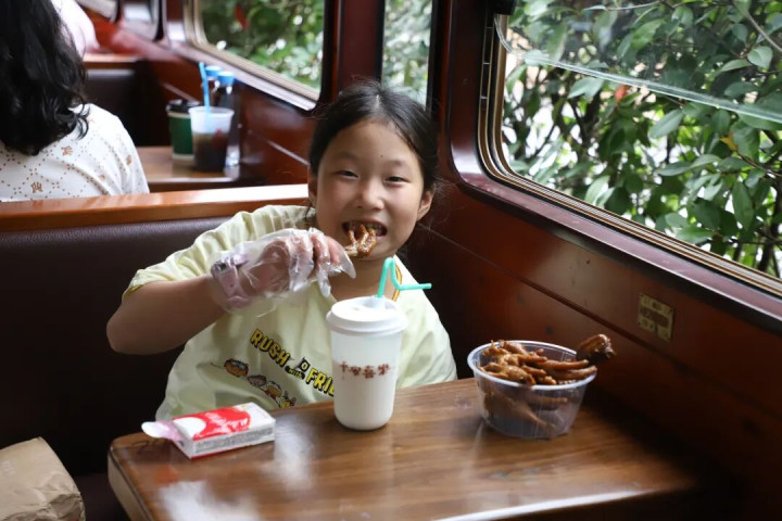 “第一次体验在火车上品咖啡看风景,每节车厢都有特色、有新意,小火车窗外风景好美,全是田园、山川、河流、果园,当地的特色农产品。”来自盘州的游客田梓宣说道。