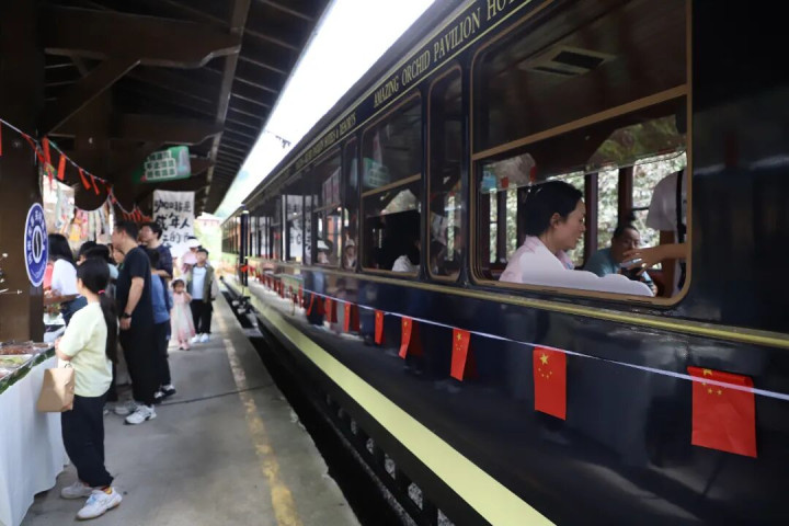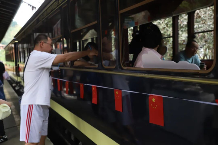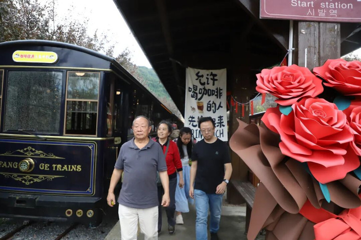 活动中,游客们乘坐一列复古的小火车,从朵芳阁始发站穿过田园、山川、河流、丛林、果园,游客们喝着咖啡欣赏车窗外的秋色,让游客在悠闲度假中回归自然、拥抱自然、融入自然。