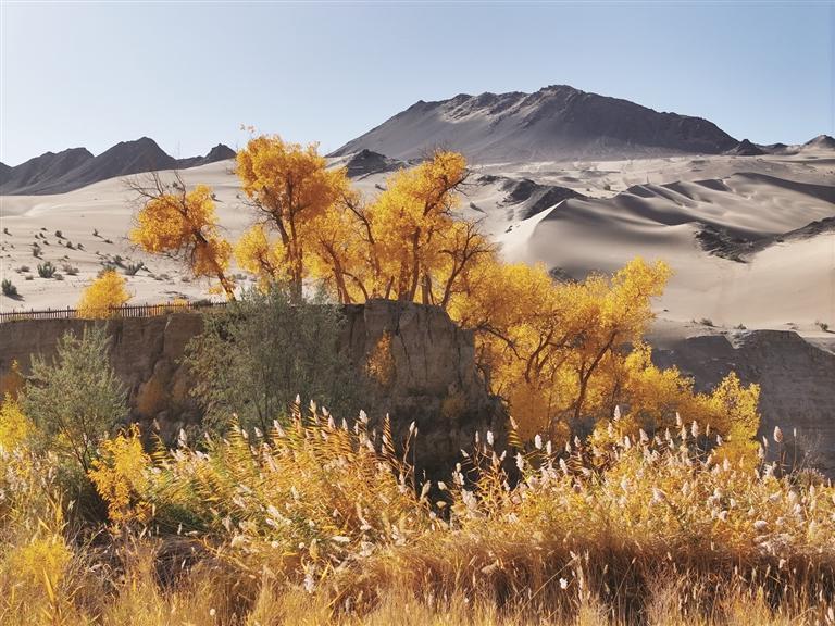 10月12日在甘肃省阿克塞哈萨克族自治县多坝沟胡杨峡景区拍摄的胡杨。 (新华社发)